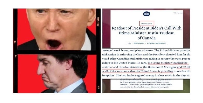 Joe Biden and Justin Trudeau conspired and collaborated to censor & DEPLATFORM the FREEDOM CONVOY! Just days before Trudeau invoked the Emergencies Act, Biden and Trudeau were discussing how the U.S. Department of Homeland Security could use its disinformation office to subvert the Freedom Convoy. Trucker and citizen journalist Gord Magill (Substack:
