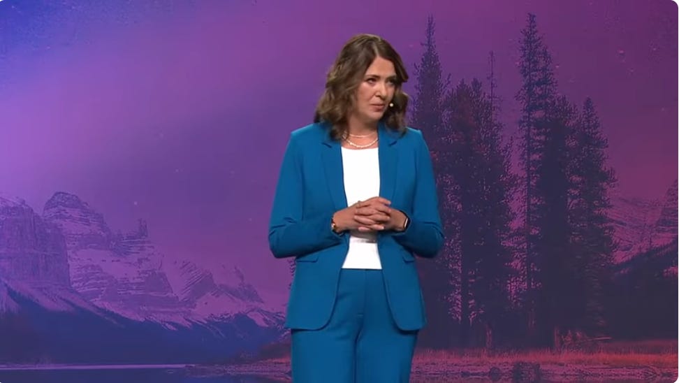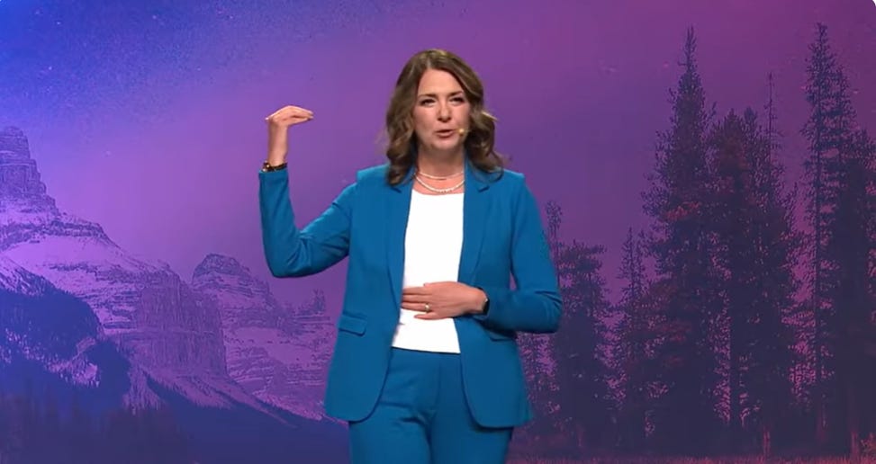 The first part of her speech was all about how she is trying desperately to justify an ad hoc political alliance with Prime Minister Mark Carney that has produced a memorandum of understanding between Alberta and Ottawa that MIGHT lead to a pipeline to the coast of BC.