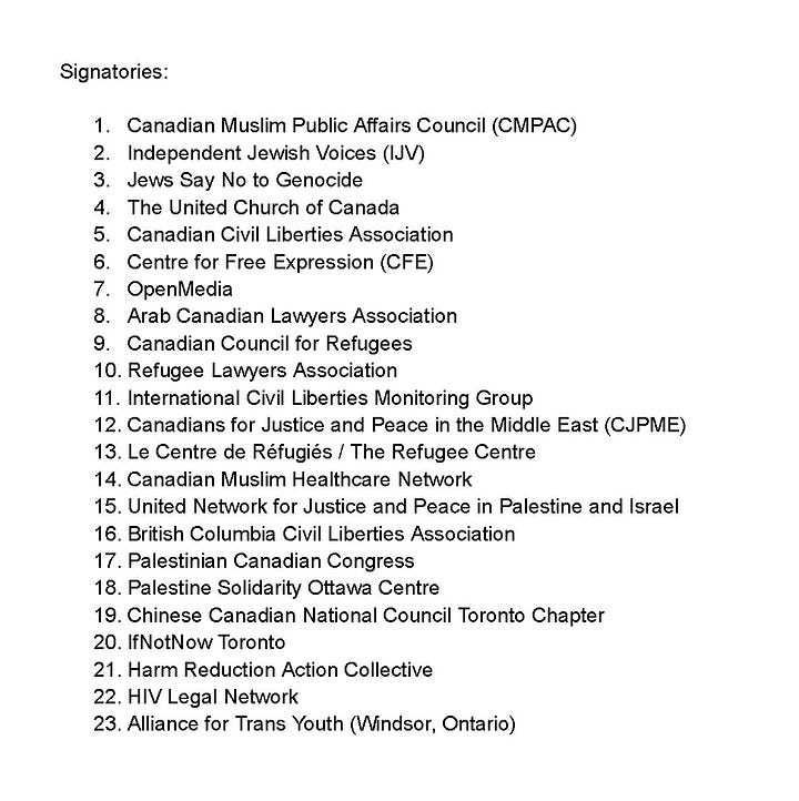 Left wing coalition against C-9 has over 23 signatories and they have a website set up where you can send your comments to Ministers and MPs with one click and edit the message as you see fit.