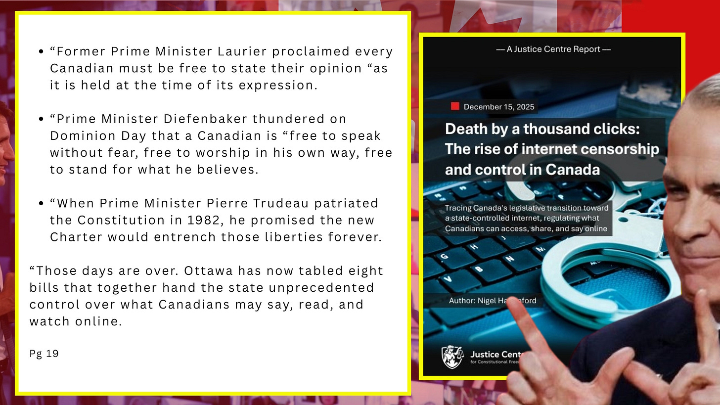 These interlocking censorship and control laws combined with the “nudge” psy-op being operated out of the Prime Minister’s office that the JCCF has also recently outlined in Manufacturing Consent: Government Behavioral Engineering of Canadians, which is a full throttle brainwashing campaign by the Mark Carney Liberals, is and will on every single Canadians freedom and privacy.