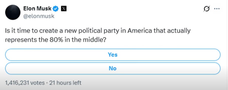 Musk was even advocating for a third political party to represent those in “the middle.”